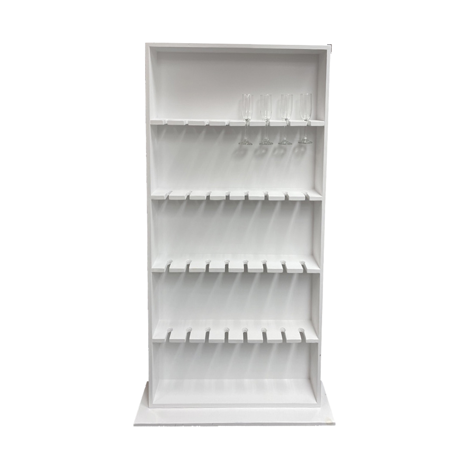 Our wall holds 50 champagne flutes. our champagne wall consists of a large wooden board with multiple rows of holes, which are arranged in a uniform pattern to create a visually striking display. The wall can be decorated with flowers, foliage, or other decorative elements to match the theme or color scheme of the event.